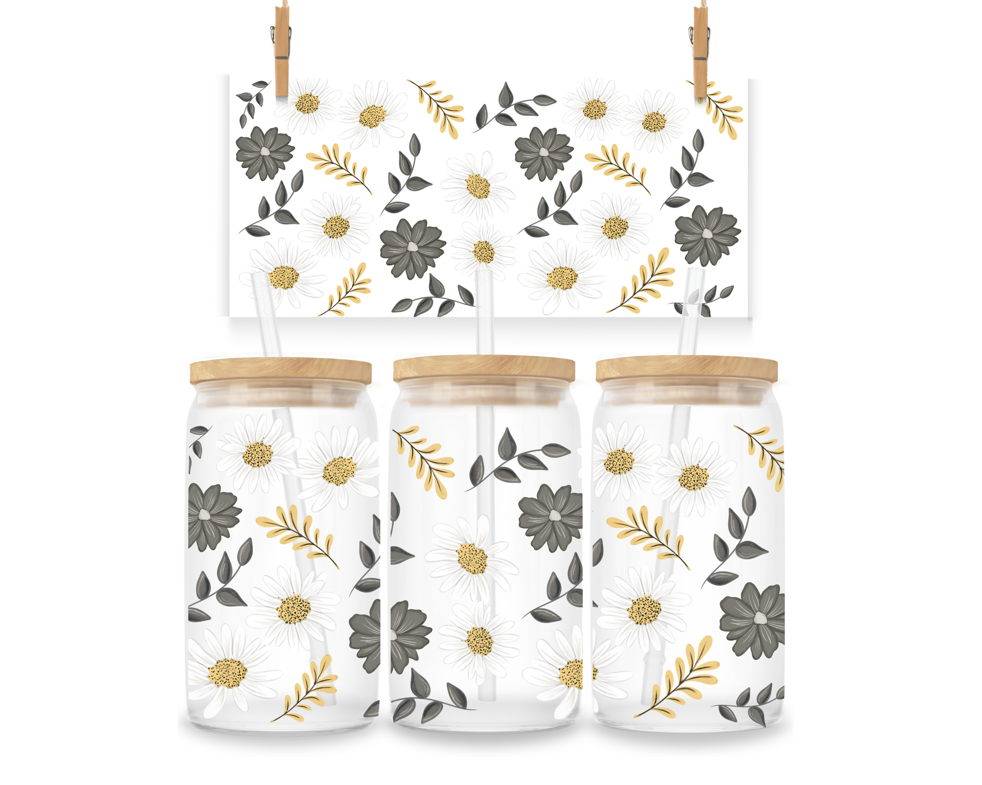 Gobelet en verre, couvercle en bambou et paille en verre (16 oz). Fait avec amour! ♡